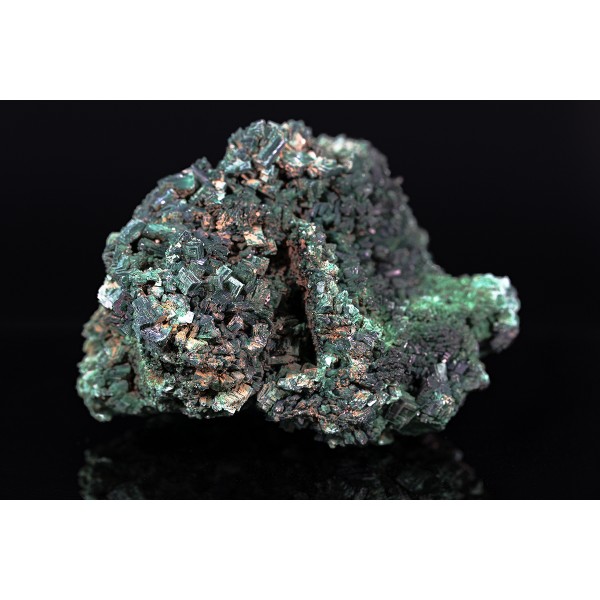 Torbernite du célébre gisement de Margabal près d'Entraygues en Aveyron. Cristaux en sapins flabelliformes de 2.5 cm d'un beau vert franc. L'ensemble cristallisé dans l'espace est un amas de cristaux enchevêtrès du filon de la célébre exploitation réouverte par 2 prospecteurs professionnels ( Jérôme Adani & Gérard Vaubourg ) qui ont permis de mettre à jours près de 3800 pièces exceptionnelles.